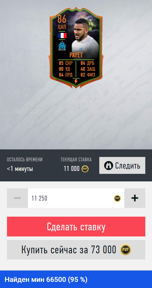 Также в процентах указывается точность поиска: 100-90% - высокая точность и 20% самая низкая - в случае массового выброса карт на рынок.