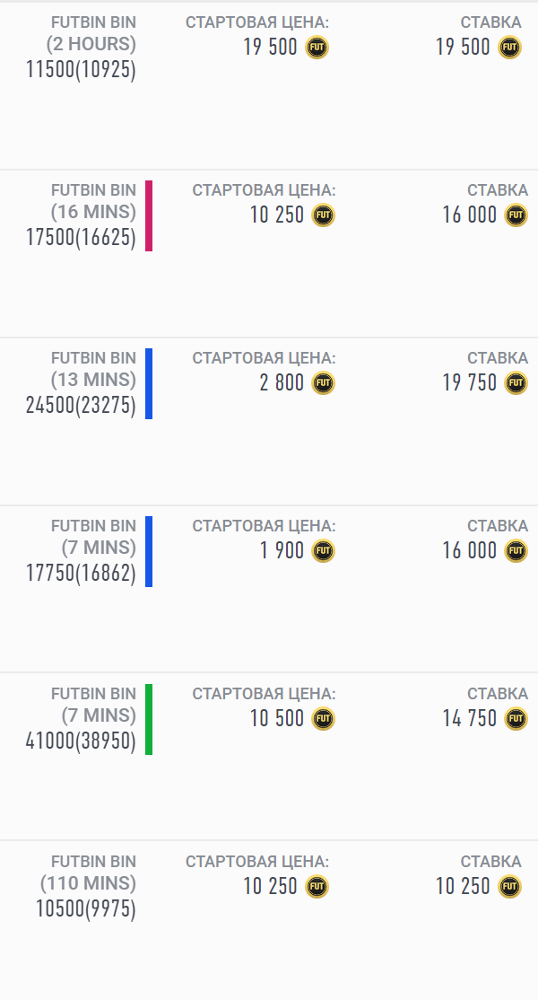 Отметки соответствуют величине прибыли при покупке карточки по ставке и продаже по минимальной цене.