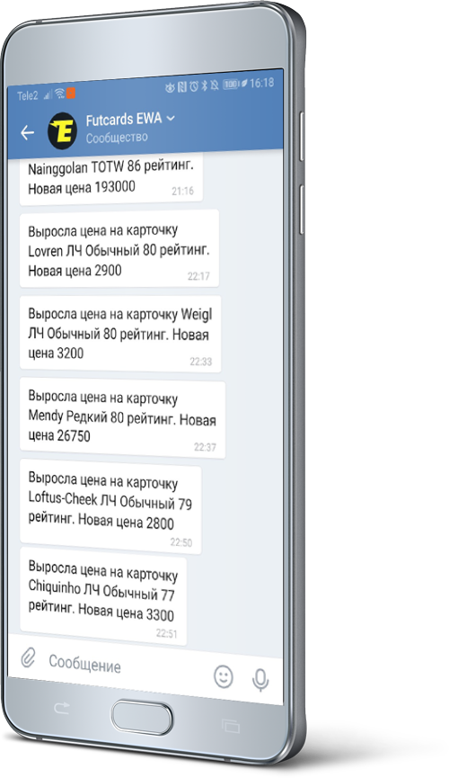 Если вы импортировали карточки из клуба в свой профиль, вы можете настроить получение уведомлений о росте цен на ваши карточки.