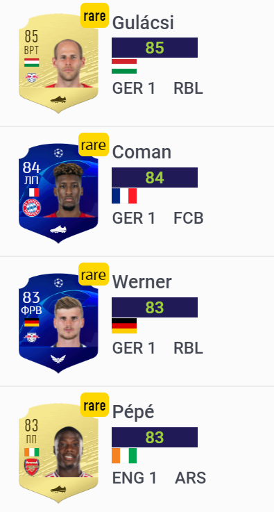 Дополнительно подсвечивается рейтинг с 83 по 85 включительно как самый востребованный в SBC